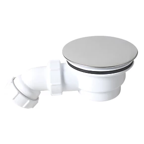 Flomasta shower trap with steel-effect waste cover and 50mm water seal. 40mm compression outlet to waste water pipes. Trap constructed with Polypropylene (PP) for a long-lasting product. Especially designed for shower trays of any material. The orientable design of the outlet connection makes it manoeuvrable for easy installation.