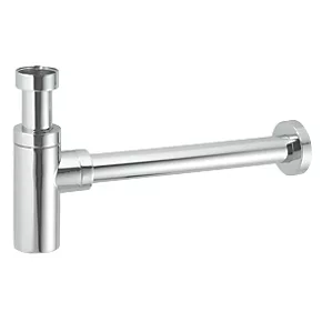 Cylindrical bottle trap with 1¼” multifit outlet. Supplied with waste pipe and wall flange.