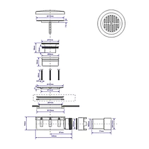 Slim shower trap with 25mm water seal and 1½” solvent weld outlet. Suitable for shower trays with a 90mm waste hole. Overall height only 53mm. Offers flow rate 24 l/min when tested under a constant 15mm head of water. Fixed with stainless steel clamping ring and 3 securing screws for tight connection to shower tray. Features removable 110mm flange for easy cleaning.